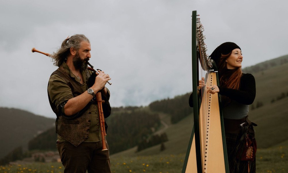 La nostra musica rende unico un matrimonio potendo realizzare i sogni degli sposi. Dal suono dell’arpa che evoca visioni ancestrali, sola o assieme al canto o al violino, fino al suono possente della cornamusa che accompagna l’entrare degli sposi, i loro passi o arrivando a cavallo. Programmeremo ogni momento del vostro giorno con voi, potendo contare su una grande scelta di strumenti e musiche. E per i momenti di ristoro o per il ballo serale, possiamo preparare per voi play-list personalizzate e offrirvi la possibilità di scegliere tra ballare con la musica dal vivo o con il Dj Set. Con la musica folk dal vivo o il Dj, sposi e invitati concluderannogioiosi la festa.